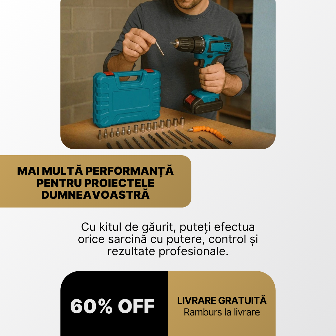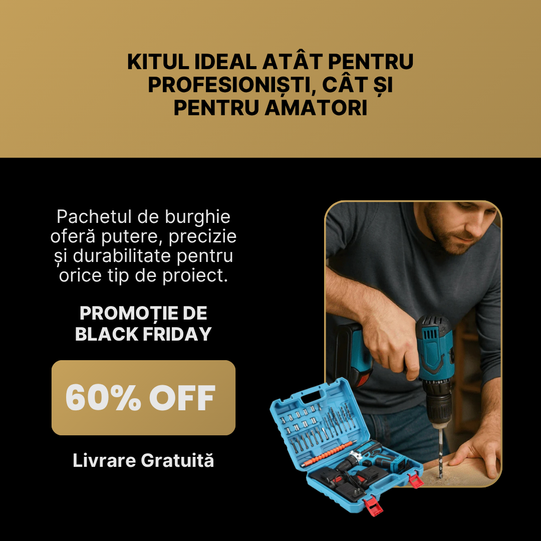 Bormașină cu Percuție cu Set de Accesorii + Polizor Cadou (Doar pentru Primii 100 de Cumpărători)